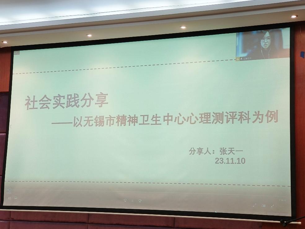 张天一同学从实践场所的确定、入院需知以及自己的实际经历三个方面讲述了她在无锡市精神卫生中心心理测评科实习的经历,向同学们传授了她的宝贵经验,提出了中肯的建议。此外,张天一同学还凝练了自己的实践感想,即心理学的落地应用和构建一个保护弱者的社会。