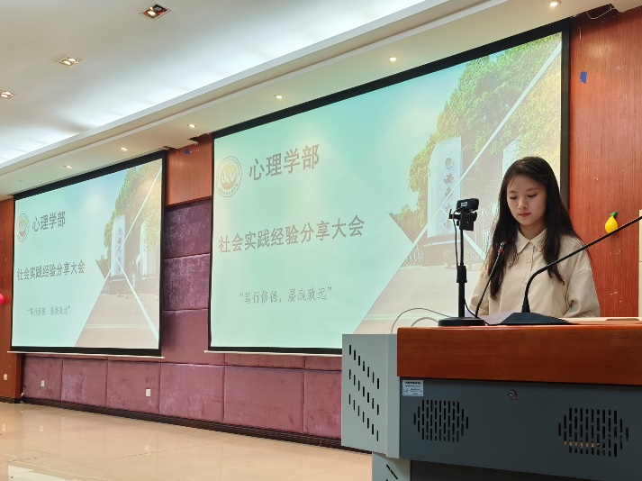 为鼓励学部青年学生积极参加社会实践活动,在实践中提升自身能力,修养美好品德,为社会贡献青春力量,2023年11月10日14时,学部于415报告厅开展了以“笃行修德,履践致远”为主题的社会实践分享大会。