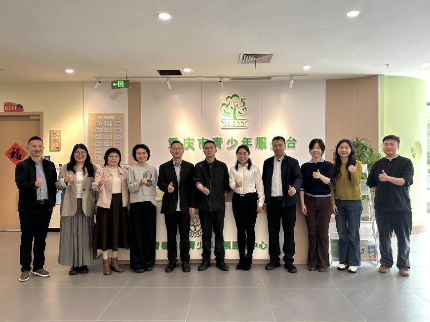青少年心理健康是党中央关心、全社会关注的重大民生工作。2026年4月8日下午,西南大学心理学部党委书记陈诚、副部长雷旭及何清华带队,赴共青团重庆市委推进校地携手共促青少年心理健康工作。共青团重庆市委维护青少年权益部部长黄彦、干部林森、重庆市12355青少年服务台负责人参加座谈会。双方围绕青少年心理健康工作、重庆市12355平台建设、校地合作等内容进行了深入交流。