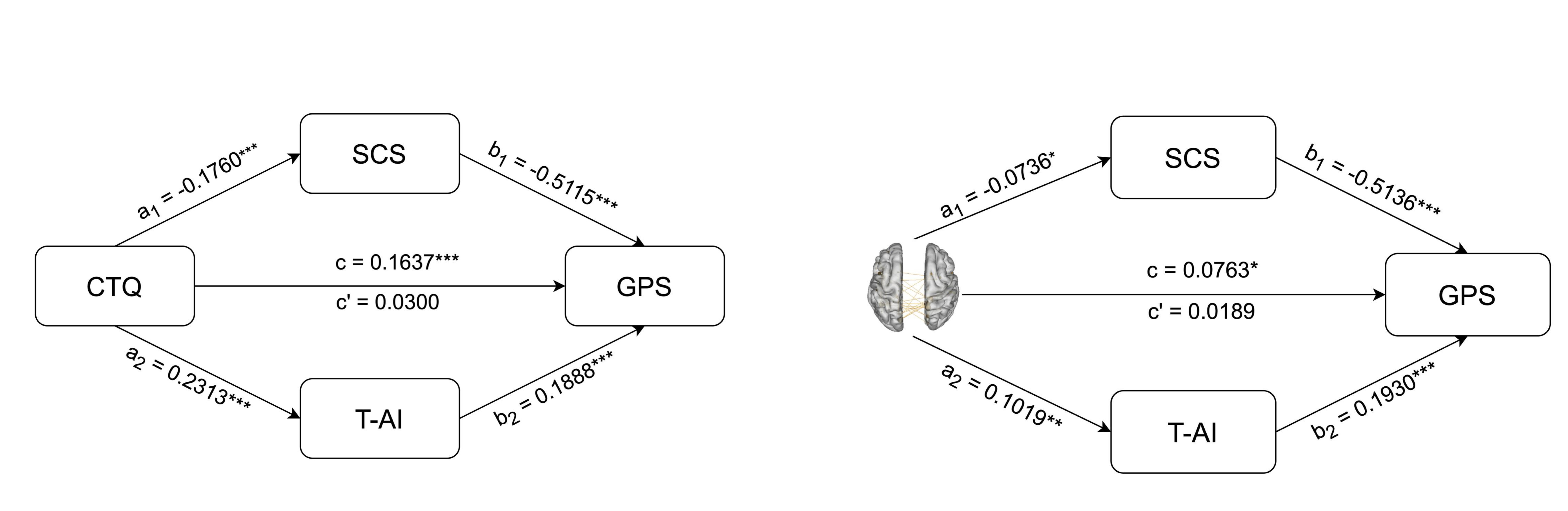 图3 脑和行为的中介分析模型